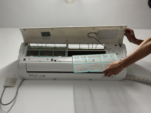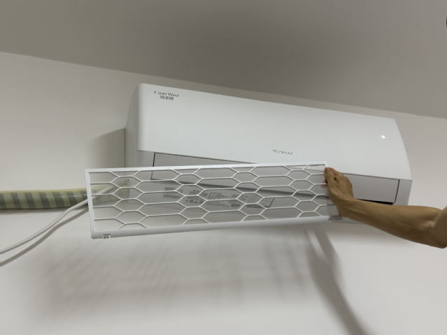 工作伊始,管理員提前告知本樓棟學生空調清洗時間,在征得學生同意后,管理員走進寢室,有條不紊拆下空調濾網,清洗濾網灰塵雜質,用干毛巾擦拭濾網,做好空調外部清潔。