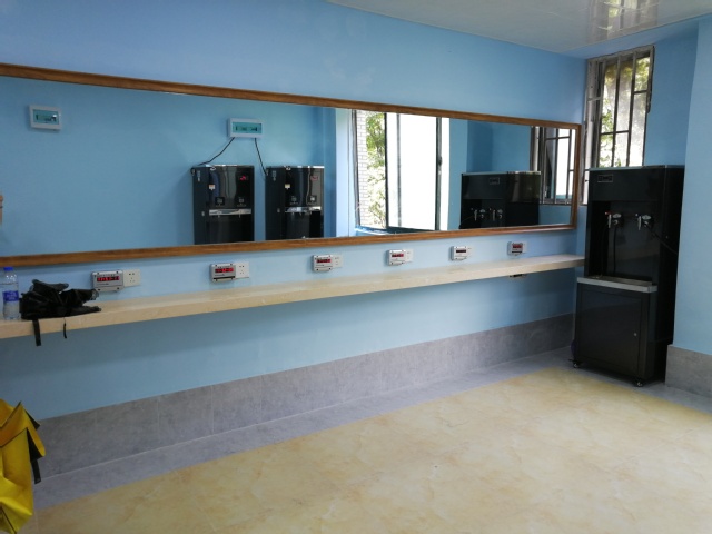 后的生活服務(wù)功能間裝飾一新,淡藍(lán)色的墻面,淡黃色的地磚和大理石臺(tái)面,格外清新、雅致;整面電吹風(fēng)臺(tái)上鏡子,映襯在燈光下格外光亮;擺放整齊有序的滾筒洗衣機(jī)、烘干機(jī)、洗衣機(jī)、開(kāi)水器、凈水器,格外便捷、實(shí)用。除了生活服務(wù)功能間,億優(yōu)公司還以西區(qū)部分學(xué)生公寓為試點(diǎn),對(duì)學(xué)生公寓大廳進(jìn)行了改造。公寓大廳進(jìn)行了修繕、刷白、裝飾,增配了公寓導(dǎo)詢(xún)臺(tái)、休息座椅,放置了綠植,讓人感覺(jué)無(wú)比溫暖、舒適,有“家”的感覺(jué)。