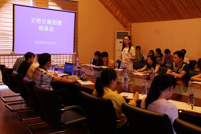 本網(wǎng)訊(通訊員 高瑋)為扎實(shí)推動學(xué)生公寓文明創(chuàng)建工作,為廣大師生營造一個神清氣爽的學(xué)習(xí)、生活環(huán)境,5月19日下午,公司與我校學(xué)工處聯(lián)合組織召開了公寓文明創(chuàng)建工作座談會。總經(jīng)理來靖德、黨總支書記王水斌、副總經(jīng)理陳武、廖挺,學(xué)生工作處副處長姚自平,校團(tuán)委辦公室主任郭倩倩以及學(xué)生社團(tuán)代表共計21人參加了座談會。質(zhì)量檢查部、物業(yè)服務(wù)部、公寓服務(wù)部、公共事務(wù)部等部門負(fù)責(zé)人參加了會議。會議由副總經(jīng)理陳武主持。