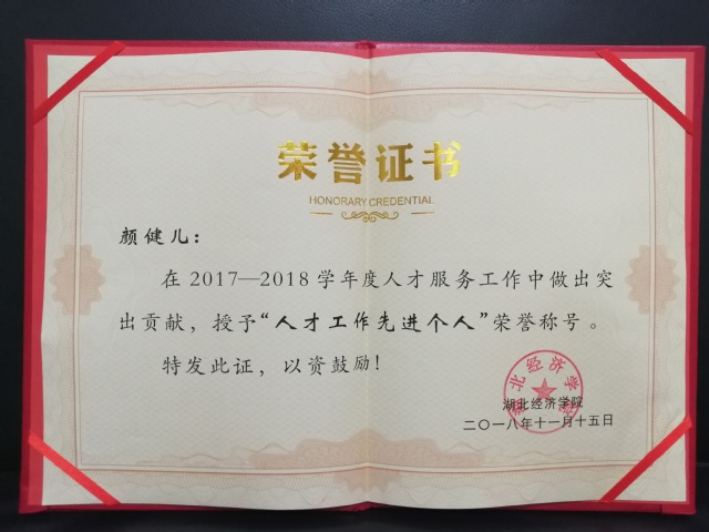 本網訊(通訊員高瑋)在11月15日上午學校召開的“2018年人才人事工作會議”上,公司物業服務部項目經理顏健兒獲評我校“人才工作先進個人”榮譽稱號。