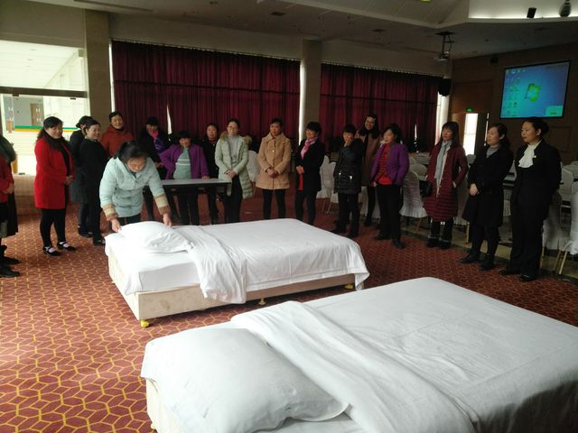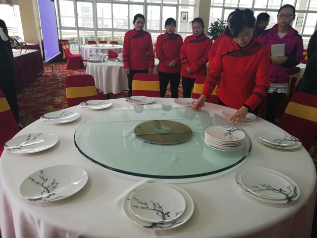 本次培訓邀請到洪山賓館有多年服務行業培訓經驗和酒店工作經驗的陳菊老師和鄧萍老師。培訓中,鄧萍老師為酒店客房崗位員工詳細講解了基本的禮儀知識和要領,進行了現場禮儀模擬演示,現場指導員工的站姿、蹲姿、坐姿等日常服務禮儀;陳菊老師為餐飲崗位員工講解擺臺實操,從鋪放桌布到擺放餐具,大到座椅板凳,小到筷子、勺子,詳細、認真展示每一個細節。培訓講師通過實景模擬演練的方式進一步加深新進員工對所學服務禮儀知識和崗位技能的熟練掌握和應用。
